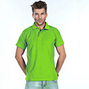 Kurzarm, Doppelnähte an Ärmeln, Saum und Kragen.